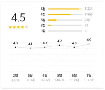 예를 들어 가게 평점을 들어보자. 배달의 민족을 보면 별점을 참여한 사람은 7000명 가까이 되는데 수천만개의 데이터에서 한 음식점에 7000개의 리뷰를 가져오게 되면 어떻게 될까?