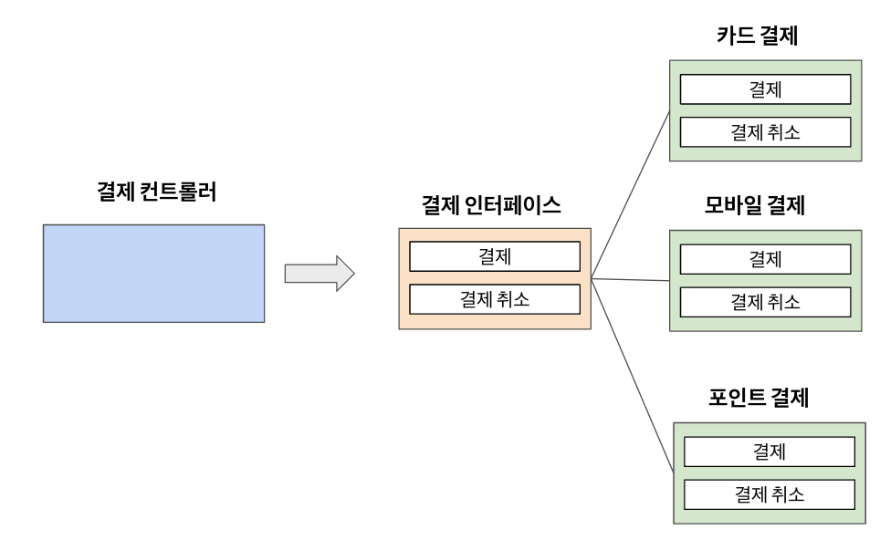 행동을 뒤로 미루게 됨으로써 데이터에 의존이 적은 설계를 하계되는 것이다. 아래 처럼 메서드를 다 정하고 구현체가 아닌 추상화된 메서드에만 의존함으로써 결합도가 낮은 설계를 하는 것이다.