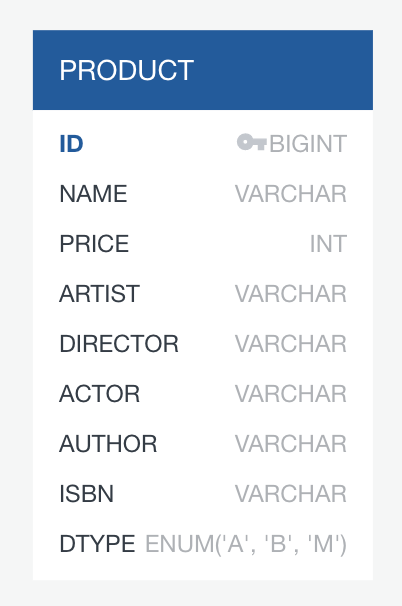 단일 테이블 전략: 하나의 테이블로 구현