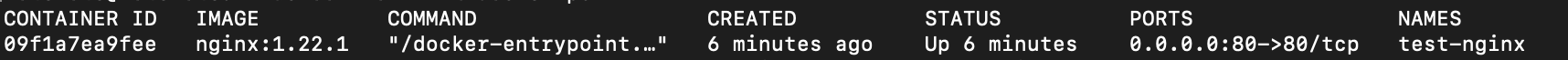 docker run --name test-nginx -p 80:80 -d nginx:1.22.1