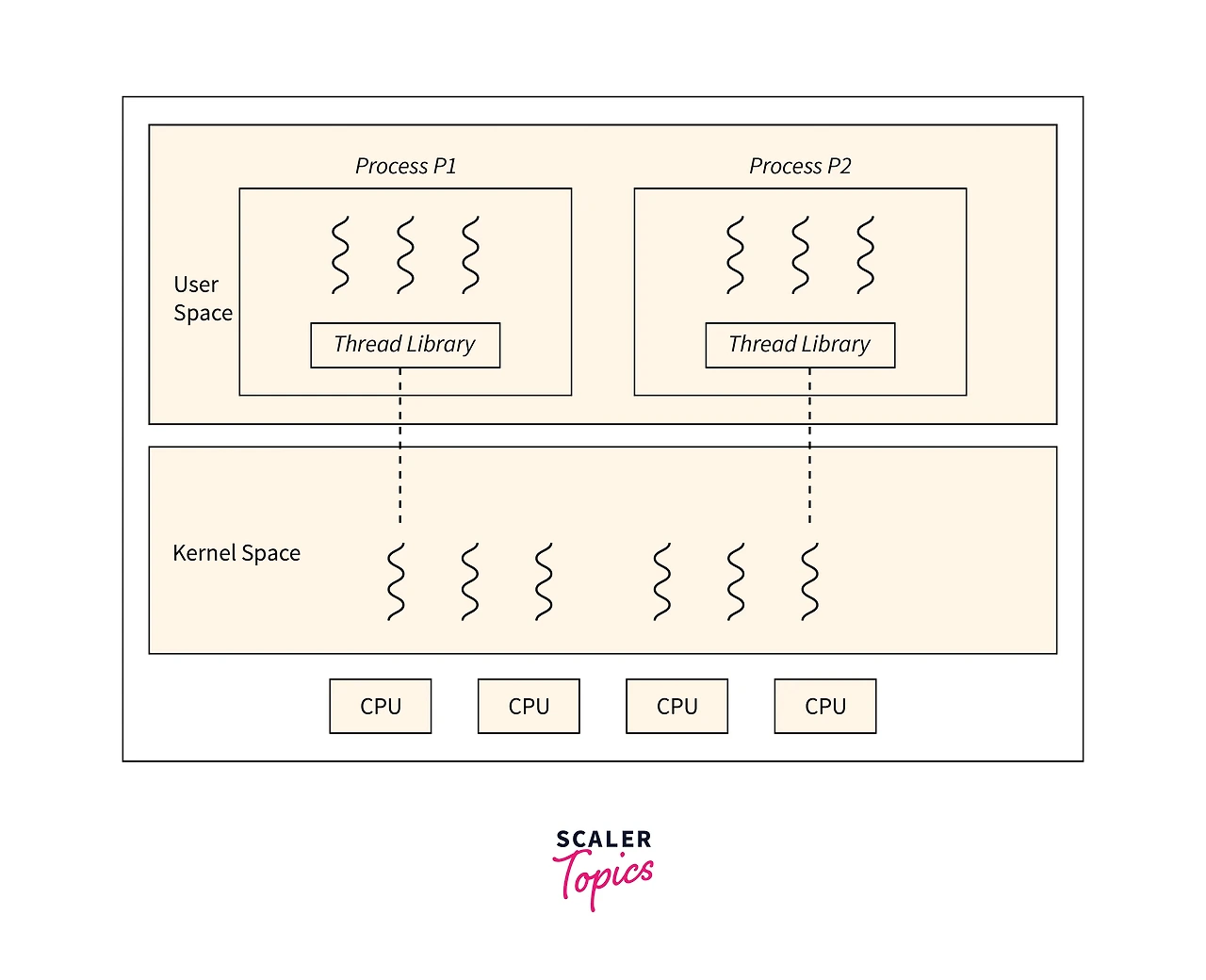 이처럼 코루틴은 CPU에서 스레드로 스레드에서 코루틴으로 서로 다른 계층에서 실행되며 코루틴이 얼마나 생성되었든 스레드에 따라 CPU의 사용시간을 지정합니다. 프로그래머는 스레드의 할당된 cpu 시간을 스레드 라이브러리를 활용하여 할당할 수 있습니다.
