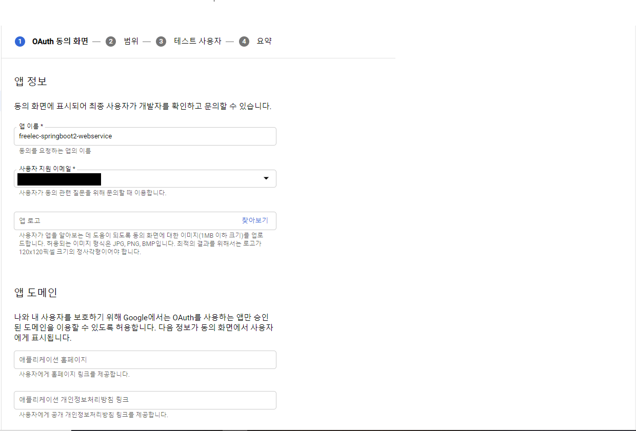 2. Oauth 클라이언트 동의화면 구성.