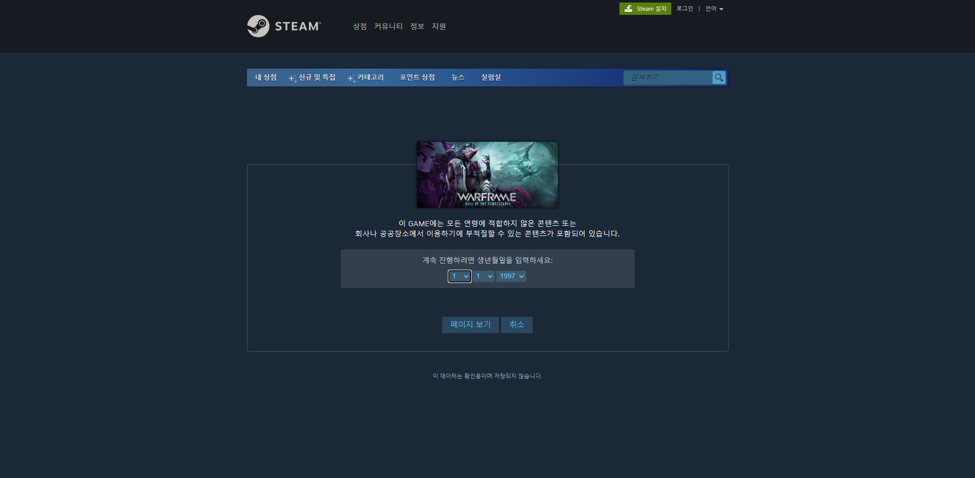 하지만 성인게임일 경우 생년월일을 입력하는 페이지로 이동을 하게 된다.