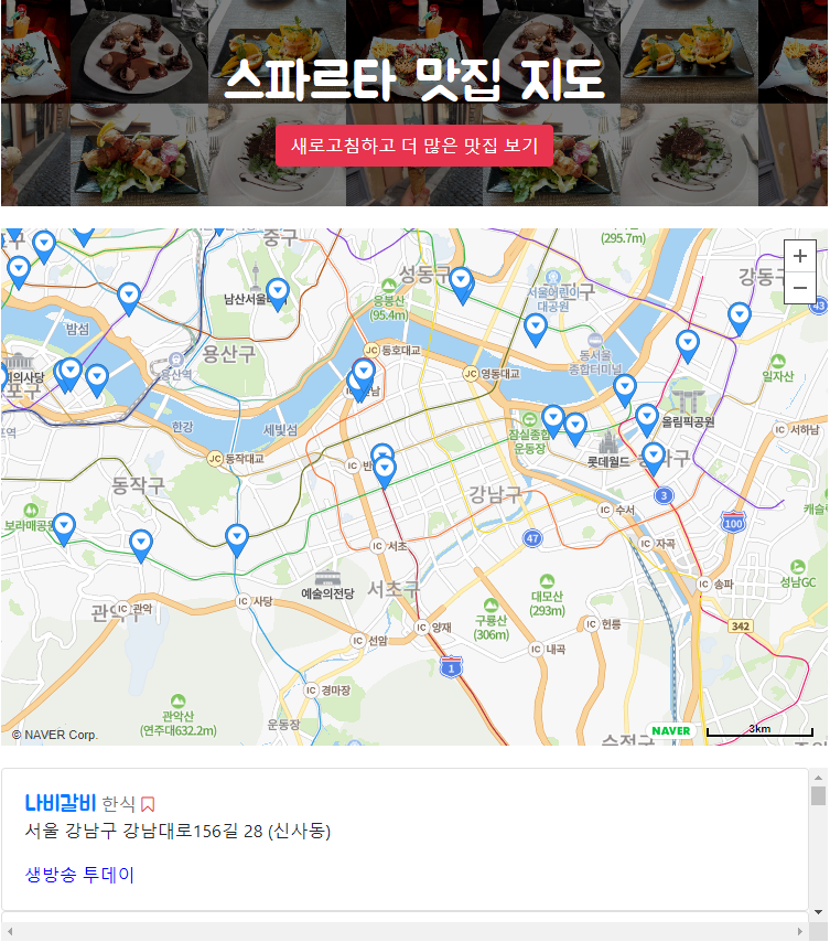 몇번째 요소인지 확인할 수 있는 값과 json형태인 맛집정보를 가져와서 스크롤박스에 추가 시켜준다.