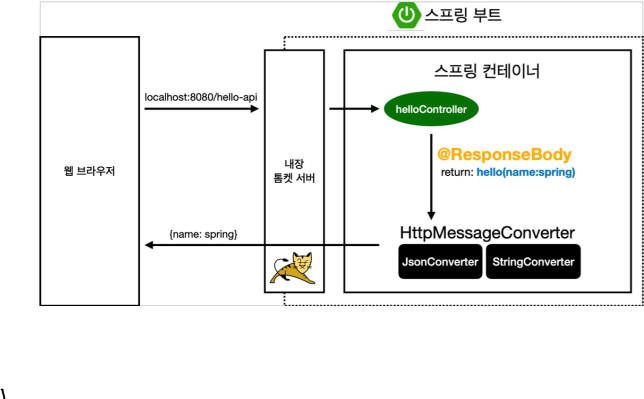 1. 웹브라우저에게 요청 받은 api를 hello controller를 통해 hello-api를 실행한다.