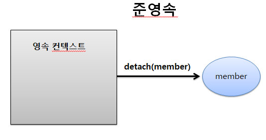 //회원 엔티티를 영속성 컨텍스트에서 분리, 준영속 상태