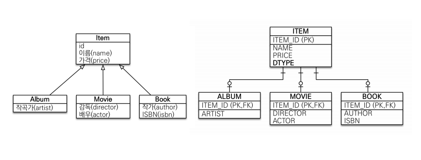 • 슈퍼타입 서브타입 관계라는 모델링 기법이 객체 상속과 유사