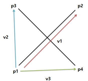 교차여부를 구하는 방법은 아래의 그림과 같이