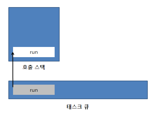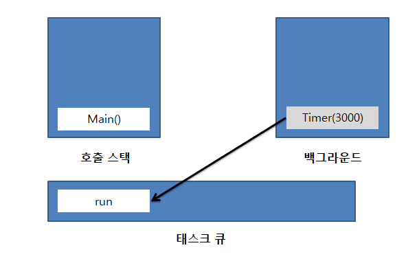 2. 타이머 3초가 지나면 run 함수를 태스크 큐로 보낸다. 이후 호출 스택에 있는 main함수 실행