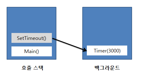 - 백그라운드: 타이머나 I/O 작업 콜백 토는 이벤트 리스너들이 대기하는 곳.