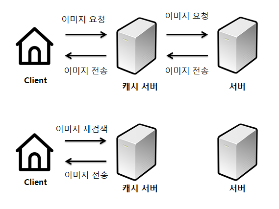 - 패킷이 웹 서버까지 가야하는지 가지 않아도 되는지를 판단하는 캐시서버가 존재한다.