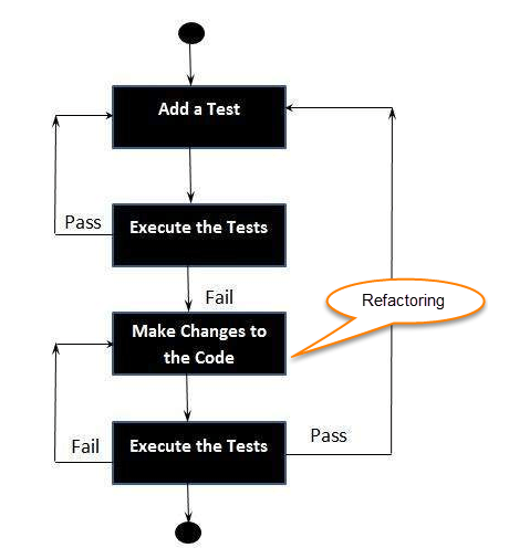 개발자는 먼저 요구사항을 검증하는 자동화된 테스트 케이스를 작성한다. 그런 후에, 그 테스트 케이스를 통과하기 위한 최소한의