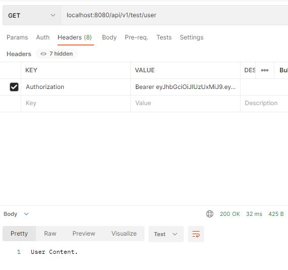 3. 스프링 시큐리티를 통해 전달 받은 토큰을 통해 인가 과정을 거친 후 서비스 로직을 동작하도록 합니다.