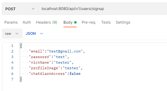 ※ api/v1/users/signup 에서 v1을 넣은 이유는 해당 api의 버전을 의미하는 것이니 빼셔도 무방합니다.